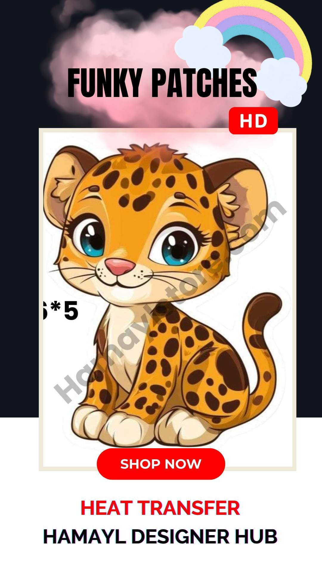 The Baby Leopard Funky Patch 6×5 Inches is a premium quality Iron On Patches in Pakistan product designed especially for kids clothing, funky outfits, hoodies, T-shirts and boutique customization. This high-definition heat transfer patch features a cute leopard design that adds charm and playful style to any outfit.