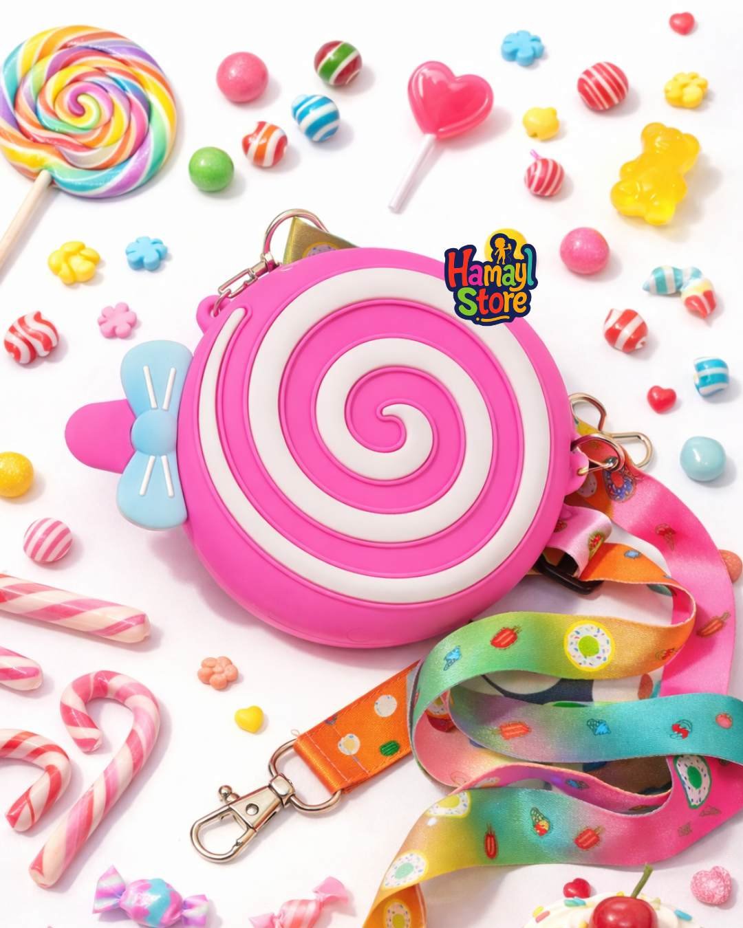 Candy Silicone Bag Pakistan by Hamayl Designer Hub is a premium quality kids crossbody bag designed in a cute pink swirl candy shape. This trendy silicone bag is specially made for girls who love colorful, playful and stylish accessories. If you are looking for a lightweight, durable and eye-catching Candy Silicone Bag Pakistan, this is the perfect choice for birthdays, Eid gifts, school outings and casual wear.