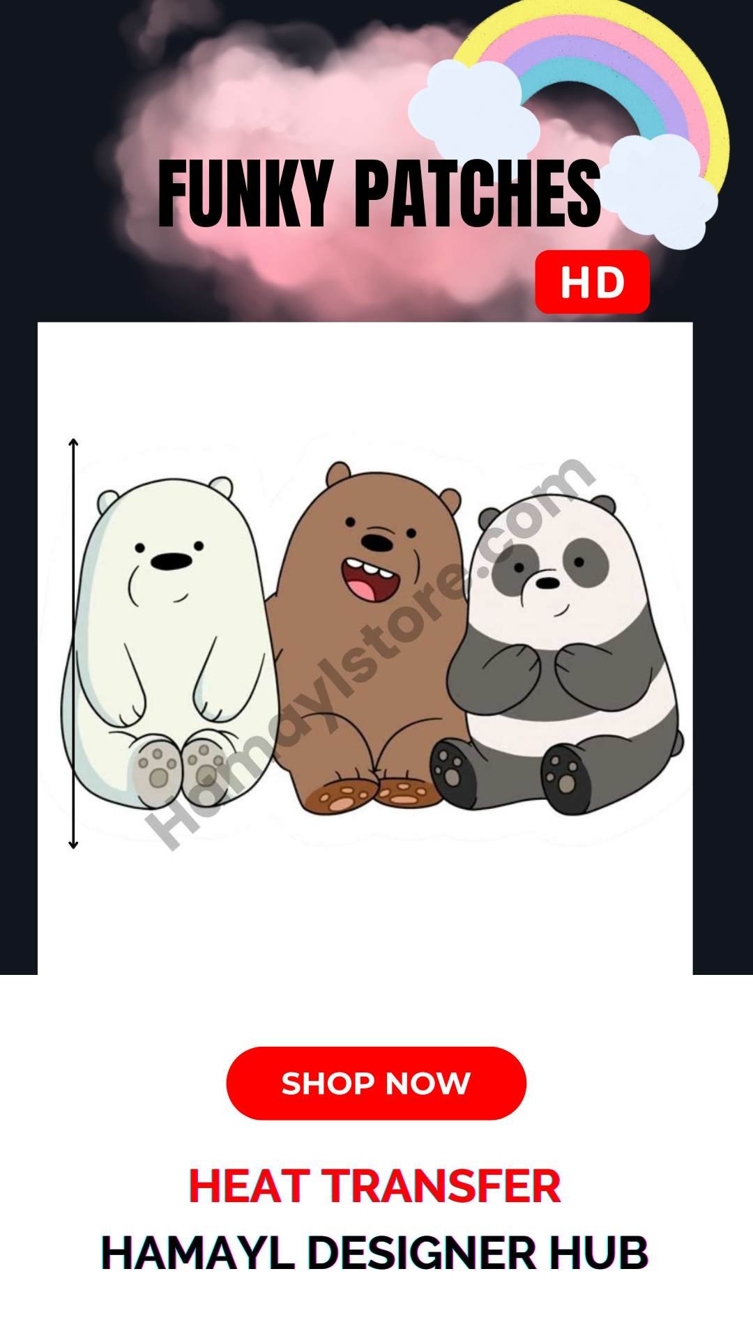 At Hamayl Designer Hub, we provide advanced digital Iron On Patches in Pakistan made using high-definition heat transfer printing. The bear trio design offers clean lines, smooth finishing, and vibrant yet soft colors that enhance children’s outfits beautifully.