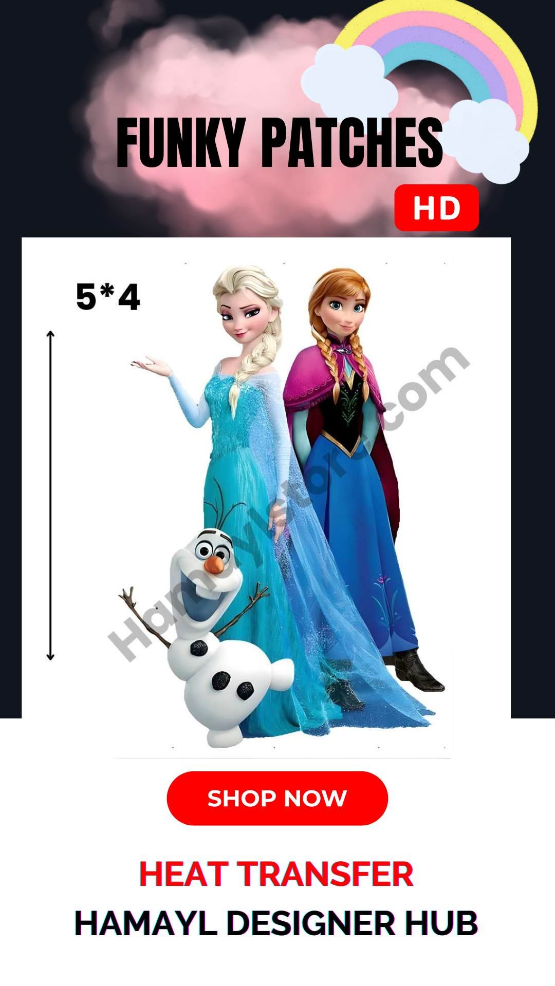 The Frozen Elsa Anna Olaf Patch 5×4 Inches is a highly demanded design from our premium Iron On Patches in Pakistan collection. Featuring the iconic Frozen theme characters, this HD heat transfer patch is perfect for girls’ frocks, winter hoodies, birthday dresses, school outfits, and boutique customization projects.