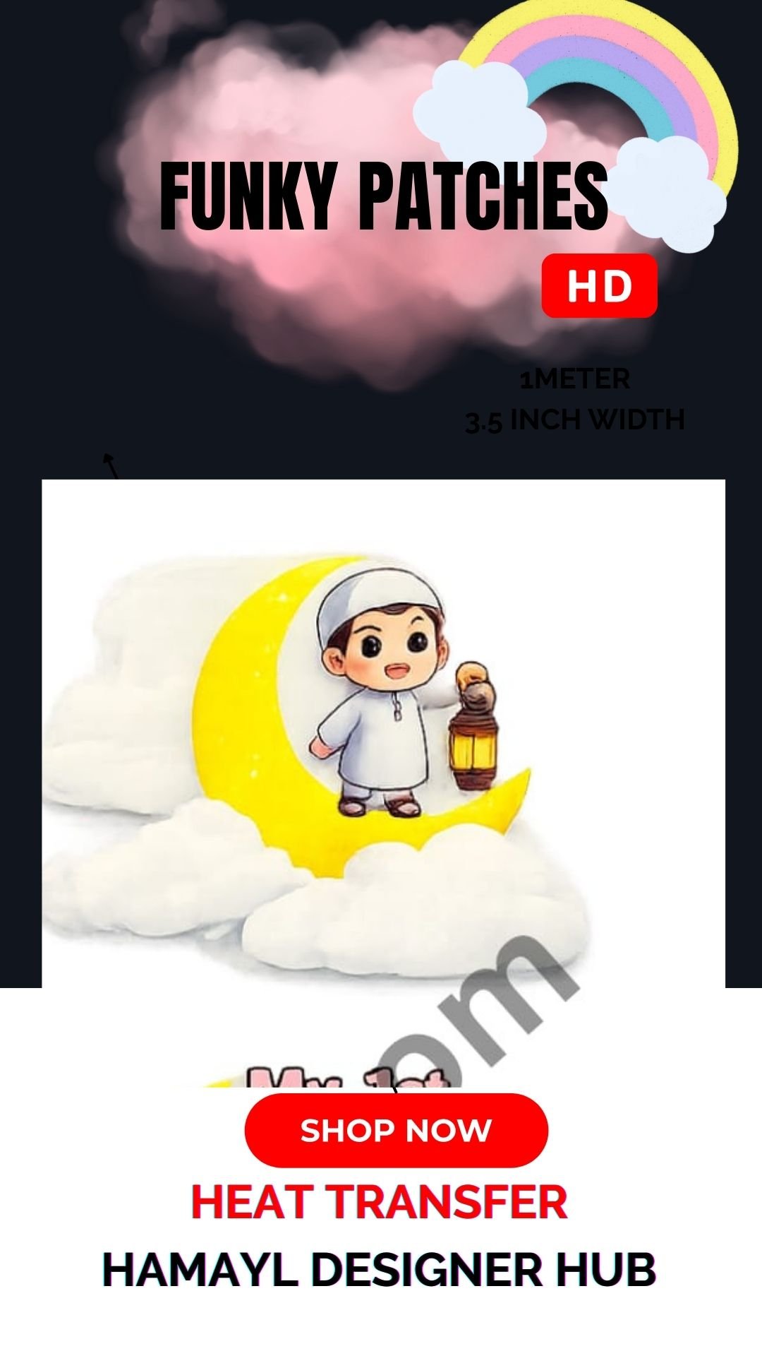Funky patch 280 -Eid Mubarak Cute Boy Patch 5×5 Inches – Islamic Lantern Iron On Patches in Pakistan | HD Heat Transfer