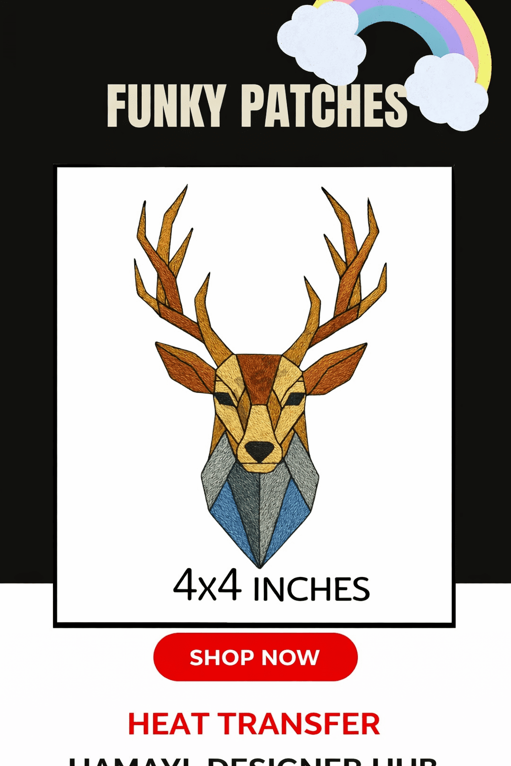Funky Patch 224 – Heat Transfer Patches Pakistan 4×4 Inches (Geometric Deer)