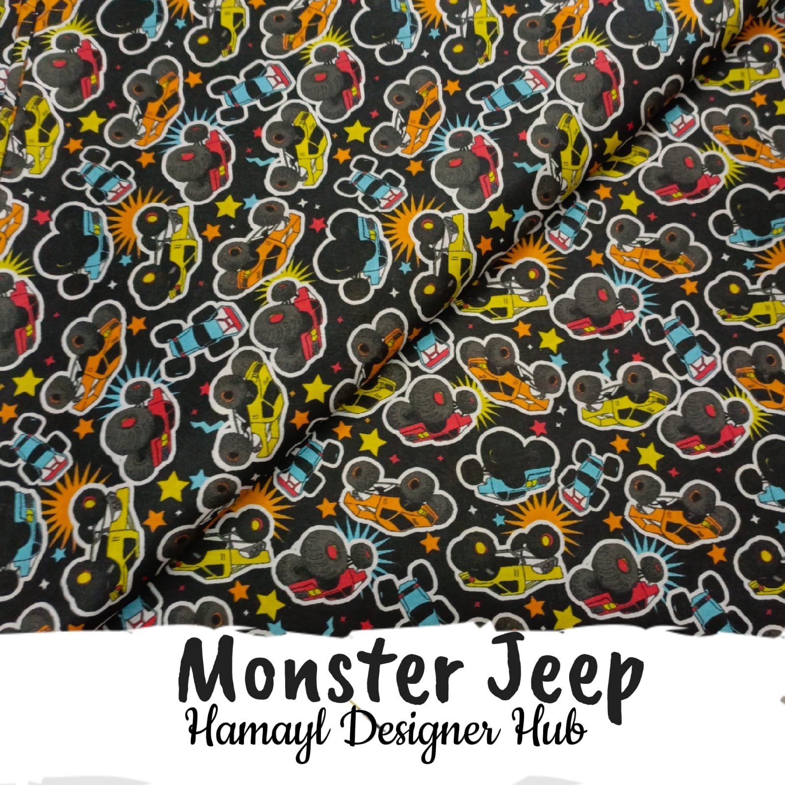 Monster Jeep- Fabric -Funky Digital Lawn- Hamayl Designer Hub