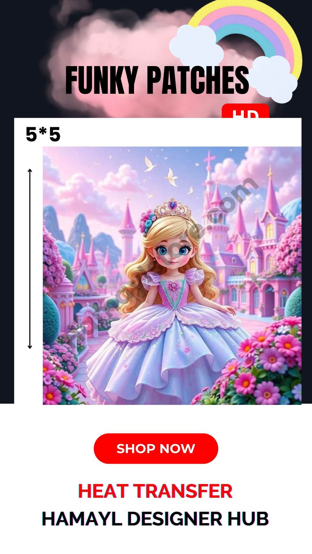 <p>The <strong>Pink Castle Princess Patch 5×5 Inches</strong> is a magical and elegant design from our premium collection of <strong>Iron On Patches in Pakistan</strong>. Featuring a royal princess standing in front of a dreamy pink castle surrounded by flowers, this HD heat transfer patch is perfect for birthday outfits, party dresses, boutique frocks, and winter hoodies.</p>