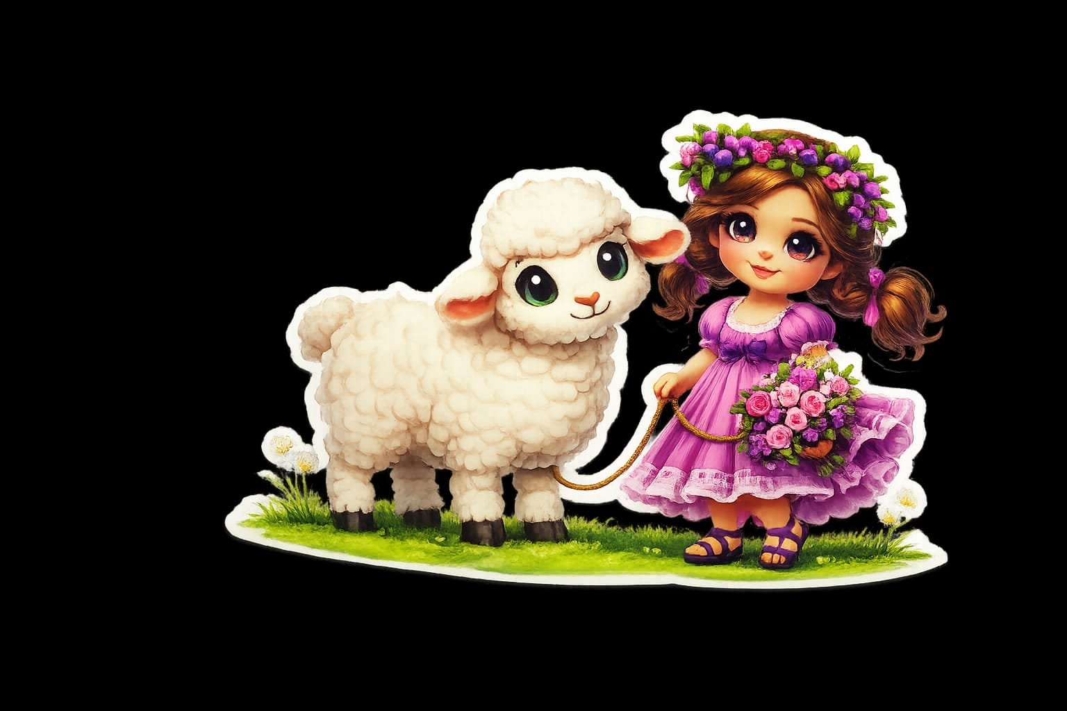 Funky Patch 349-Eid ul Adha girl with mini Sheep Patch 5 Inch โ Cute Islamic Cartoon Heat Transfer Patch