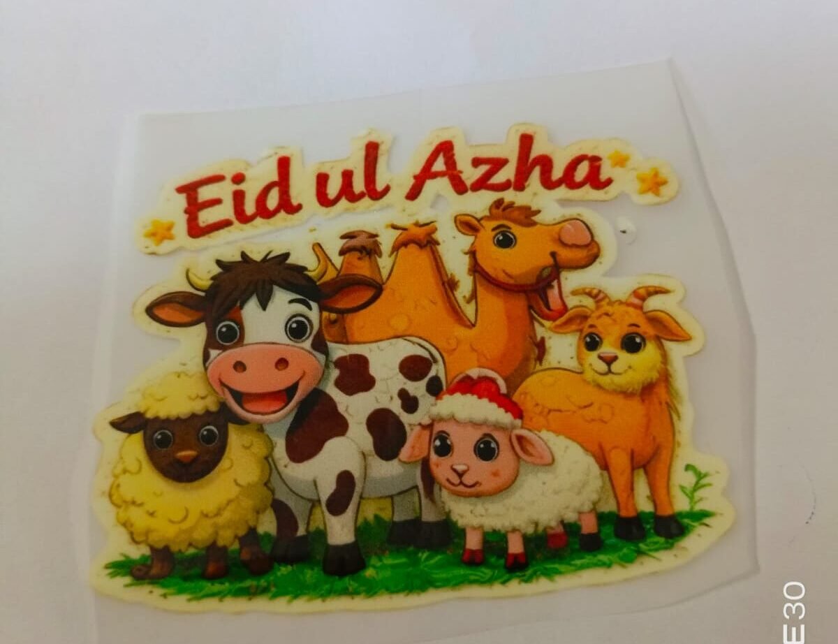 Funky Patch 351-Eid ul Adha all animal Patch 3 Inch โ Cute Islamic Cartoon Heat Transfer Patch
